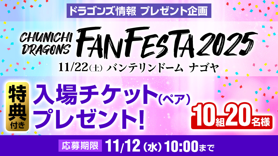 今回のプレゼントは中日ドラゴンズファンフェスタ2025の特典付きペアチケットです!!